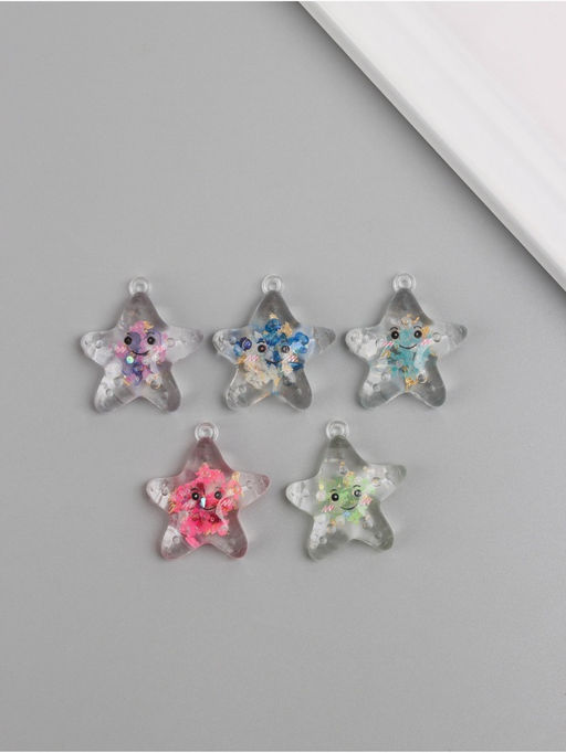 Цена за 5 шт. Подвеска для творчества акрил «Улыбчивая звёздочка», светится в темноте, 3×2.7×1 см, МИКС