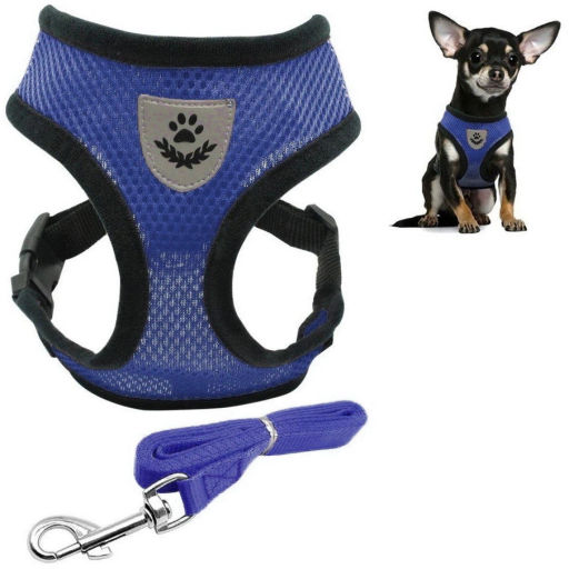 Цена за 2 шт. Шлейка с поводком 118см "Sweet puppy" размер S, цвет голубой
