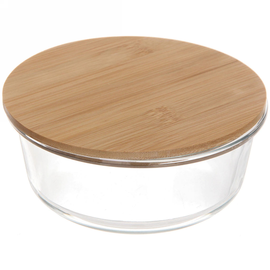 Контейнер стеклянный 900мл "Хай-Тек" круглый с бамбуковой крышкой