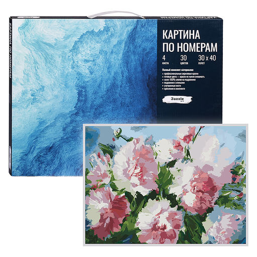 • Холст с красками 30х40 по номерам "В розовой дымке пионов"