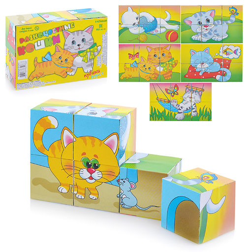 • В наборе 6 кубиков (4х4х4 см.) с фрагментами картинок.