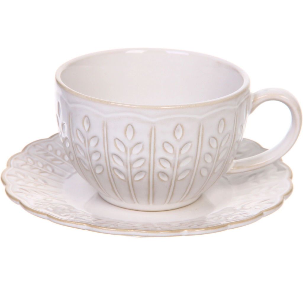 Чайная пара "Верона" (кружка 230мл, блюдце) веточка бежевая­