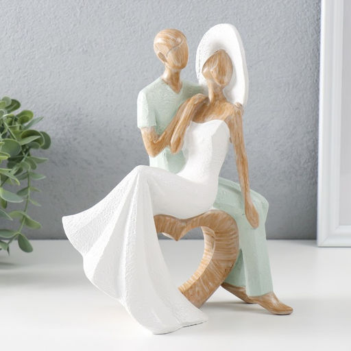 Фигурка полистоун «Ретро. Влюблённые сидят на сердце», бело-зелёный, 18×11×23.5 см