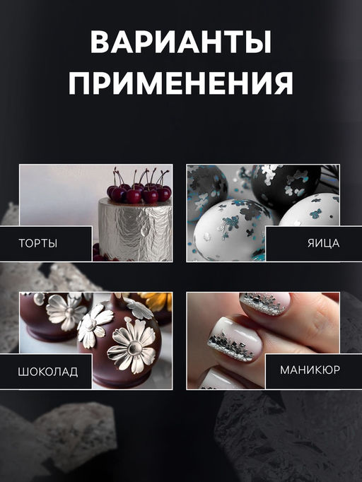 Кондитерское серебро - это особый вид пищевого декора, предназначенного для придания блюдам и десертам элегантного и роскошного внешнего вида. Это тонкие листы или хлопья серебра, которые можно наносить на поверхность пищи, чтобы создать блестящий и привлекательный эффект.Удаляемые украшения из кондитерского серебра добавляют роскоши и элегантности различным кондитерским изделиям. Вы можете использовать их для украшения тортов, пирожных, шоколадных изделий, печенья, макарон и других сладостей. Серебристые элементы придают блюдам блеск и привлекательность, делая их по-настоящему изысканными. Бесплатная доставка: Да. Наша разработка: Да.