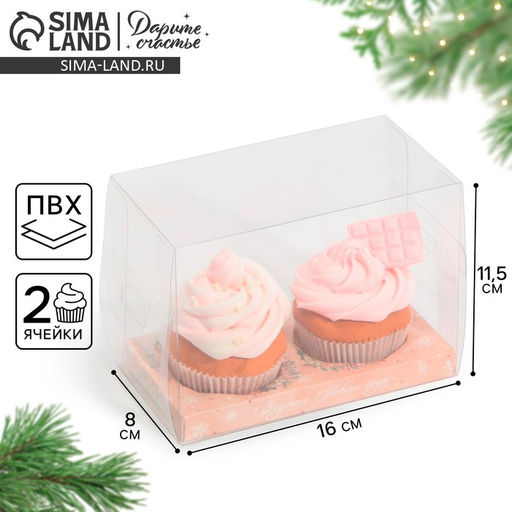 • Цена за 5 шт. Коробка для капкейка «Новый год: Зимние цветы», 8×16×11.5 см