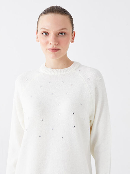 Bisiklet Yaka Bask?l? Uzun Kollu Kad?n Triko Tunik