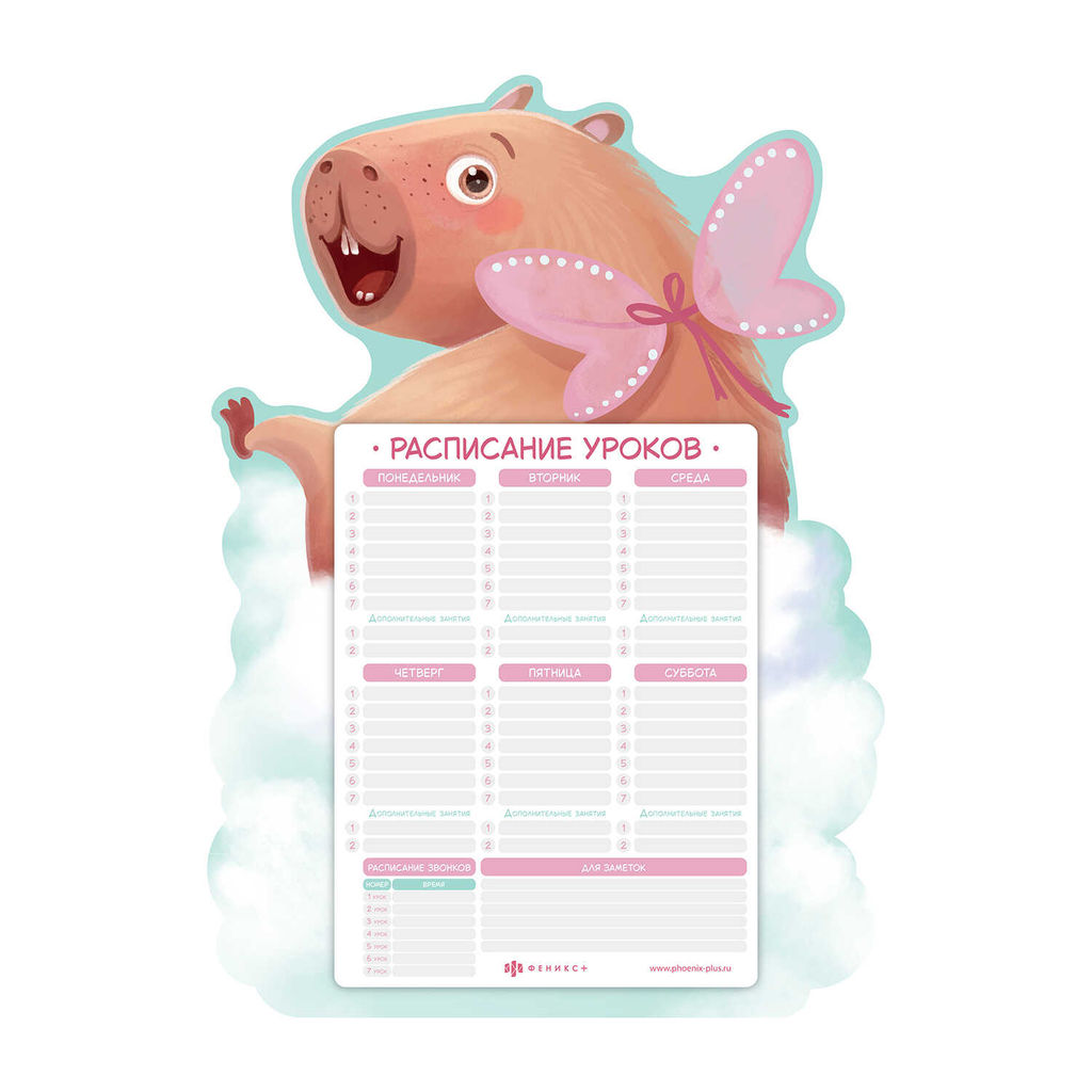 Расписание уроков А3, арт. 72577/ 50 КАПИБАРА-МИЛАШКА (297х420 мм, материал: мелованный картон 235 г/м?, полноцветная печать, декор: выборочный УФ-лак; индивидуальная упаковка: нет)