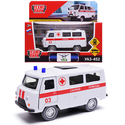 • Машина металл УАЗ-452 "Буханка" Скорая 10,5 см, двери, инерционная