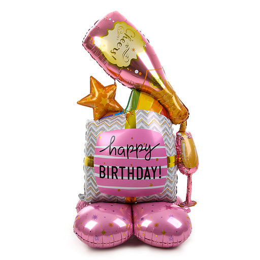 • Воздушный шар фольгированный 48" «Розовый День Рождения», на подставке