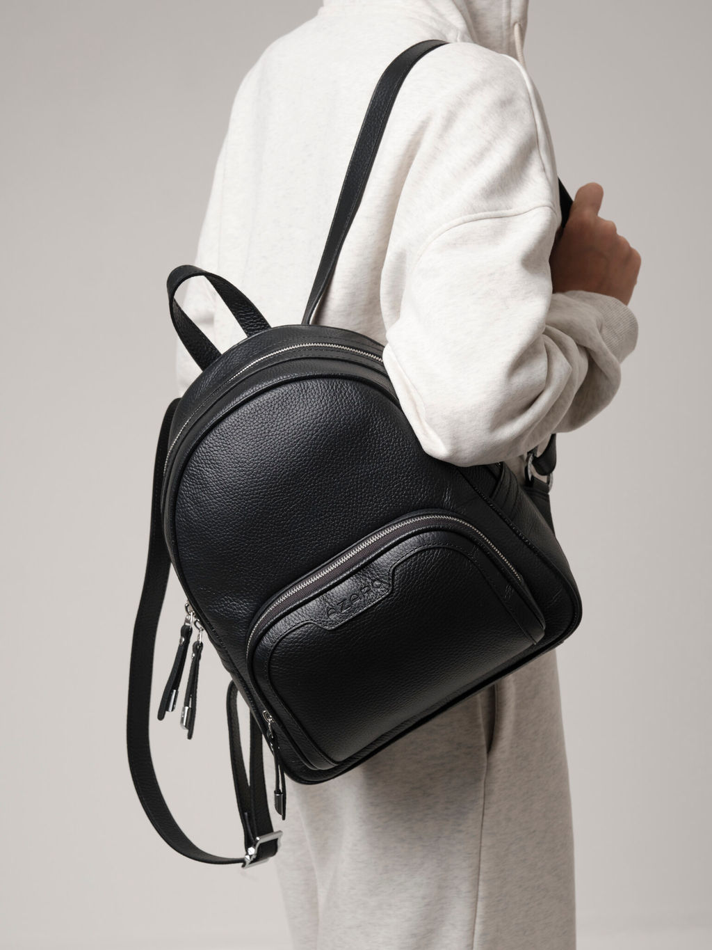 Женский кожаный рюкзак из натуральной кожи Azaro арт. 30852 черный идеальный аксессуар для стильных и активных женщин. Детали: натуральная кожа, регулируемые лямки, 1 внешний карман на молнии, 1 внутреннее отделение на хлопковой подкладке, 1 закрытый каман на молнии в рамке из натуральной кожи с логотипом бренда, 2 открытых боковых кармана, пуллеры из натуральной кожи с декоративной фурнитурой. Женский кожаный рюкзак Azaro 30852 сочетает в себе элегантный дизайн и практичность, что делает его незаменимым спутником в повседневной жизни. Мягкая текстура натуральной зернистой кожи приятно ощущается на ощупь, а изысканный внешний вид добавляет образу шика и утонченности. Комфорт и функциональность ключевые особенности этого кожаного рюкзака. Удобные регулируемые лямки позволяют настроить рюкзак под любую фигуру, а вместительное основное отделение достаточно для хранения всех необходимых вещей. Внутри предусмотрены карманы для мелочей, что упрощает организацию пространства. Рюкзак идеально подходит как для прогулок по городу, так и для путешествий. Это отличный выбор для тех, кто ценит качество, стиль и комфорт в каждом дне. -- Характеристики -- Цвет: черный Материал: Натуральная кожа Бренд: Azaro Тип: Рюкзак Страна-изготовитель: Россия Высота, см: 32 Ширина, см: 27 Глубина, см: 13 Материал подкладки: Хлопок Количество внутренних отделений: 1 Количество внешних карманов, шт: 1 Тип застежки: Молния Формат А4: не вмещает Вес товара, г: 840 Озон (наличие): нет Пол: женская коллекция Группа товара: Сумки