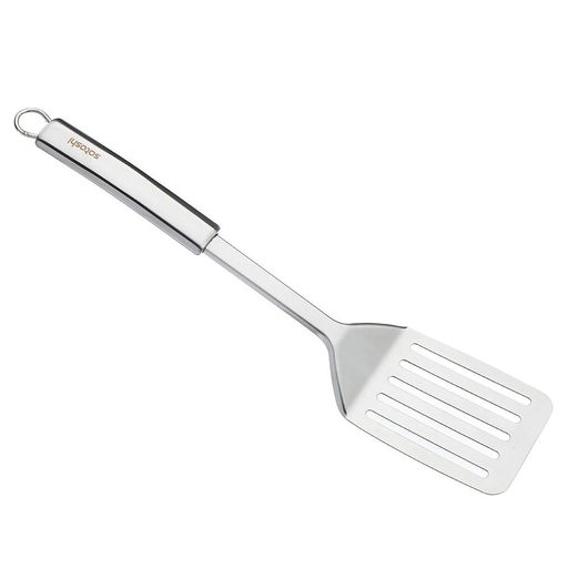 Широкая кулинарная лопатка SATOSHI Альфа из нержавеющей стали со специальными прорезями.Удобная ручка обеспечивает- комфорт при использовании. Нержавеющая сталь не боится температурного шока и не впитывает запахи, инструмент легко мыть вручную или в посудомоечной машине. Эргономичная ручка посуды обеспечит удобный хват, предотвращая выскальзывание из рук.­