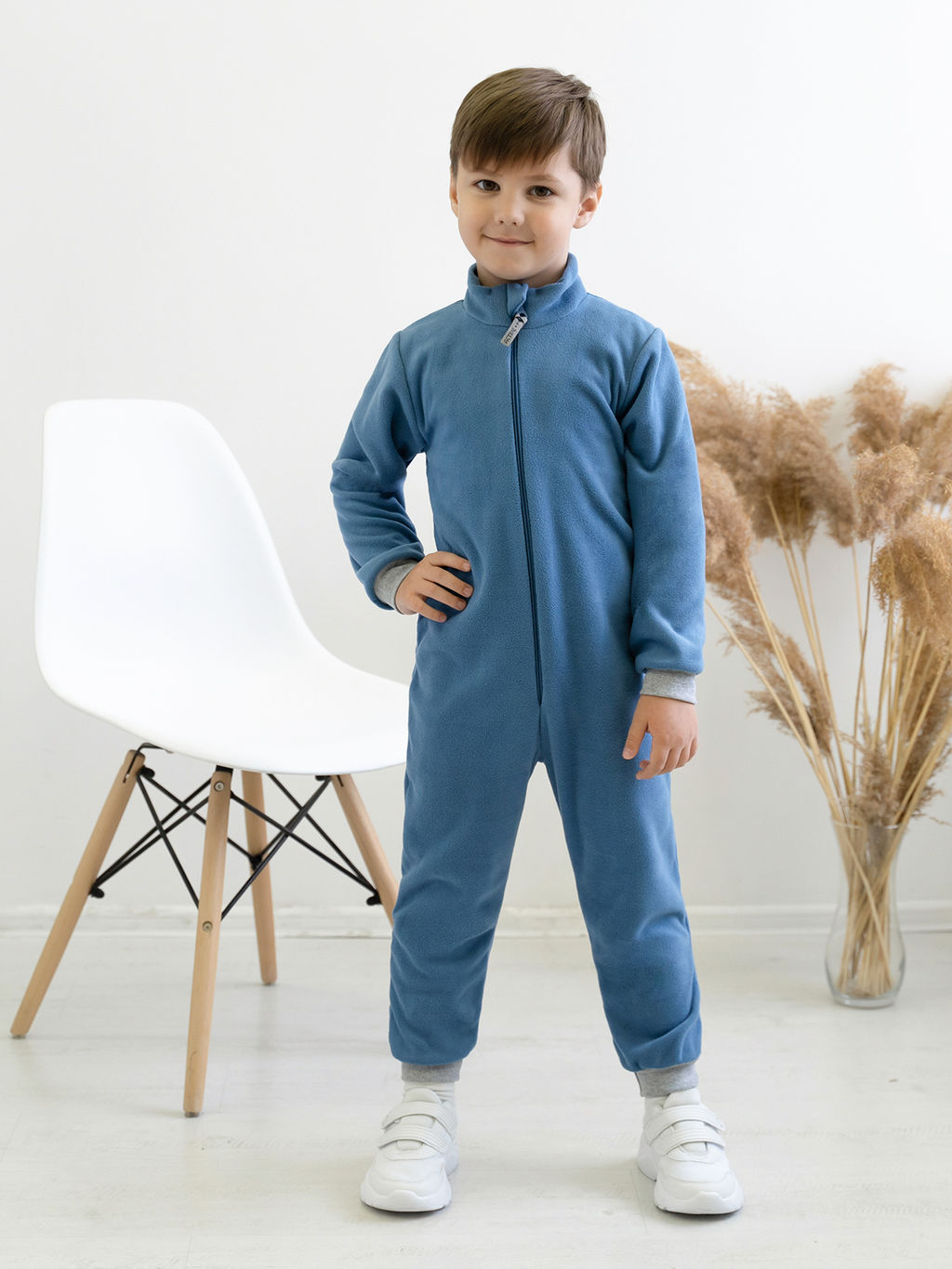 Детский комбинезон выполнен из флиса SHELYS тёплого и мягкого полотна нового поколения. Сшит комбинезон аккуратными внутренними швами очень крепкими и прочными. Прямая молния-застёжка проходит по центру передней части. Цвет молнии гармонирует с цветом комбинезона. Плоская форма слайдера удобно ложится в детскую руку малыш сможет сам застегнуть комбинезон. На бегунок прикреплен прямоугольный пуллер с логотипом бренда. Воротник-стойка хорошо прикрывает шею от ветра. Специальный клапан прячет бегунок молнии, не давая ему травмировать нежную кожу ребёнка. Трикотажные эластичные манжеты на рукавах и штанинах не пропускают холодный воздух к телу. Комбинезон можно носить отдельно или в качестве нижней поддёвы под мембранную одежду. Выпускается модель в синем (джинс) цвете.