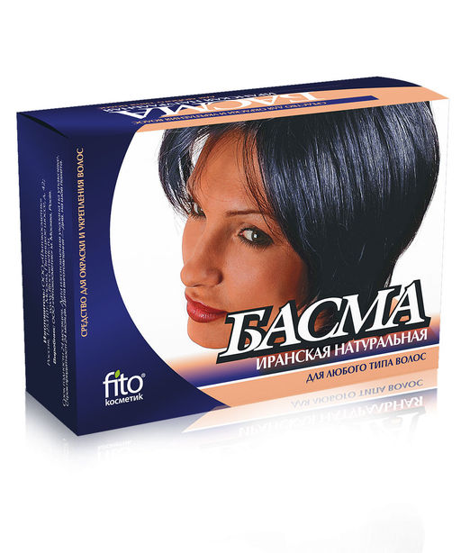 Басма представляет собой натуральную растительную краску экологически чистый продукт, содержащий биологически активные вещества и витамины. Она предназначена для окрашивания волос в более темные тона, также для окраски седых волос в цвета от светло-каштанового до черного. Тон окраски зависит от структуры, толщины, исходного цвета волос и времени контакта. Волосы после применения хны и басмы приобретают блеск, эластичность, легко расчесываются.