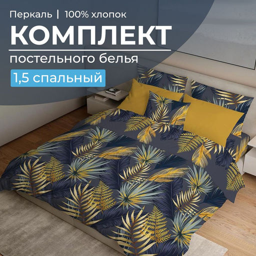 Представляем вашему вниманию изысканный комплект постельного белья 1,5 спальное от ИвановоТекстиль, который станет идеальным выбором для вашего дома. Этот комплект постельного белья 1,5 выполнен из перкаля — плотной, тонкой и гладкой ткани из 100% хлопка высокого качества. Перкаль отличается своей мягкостью и приятными тактильными ощущениями, обеспечивая вам сладкий сон и комфортный отдых. Комплект постельного белья включает в себя простынь размером 150x220 см, пододеяльник размером 150x215 см с входом в нижнем шве, и две наволочки размером 70x70 см с глубиной клапана не менее 25 см. Постельное белье 1,5 спальное из перкаля плотностью 110 г/м2 не требует особого ухода: его можно стирать при температуре 40°С, оно не растягивается и прекрасно держит форму. Ткань хорошо впитывает влагу, пропускает воздух и не липнет к телу, что делает ваш сон еще более комфортным. Рисунки на перкале получаются яркими и четкими, добавляя эстетическую привлекательность вашему спальному месту. Ивановотекстиль постельное белье производится в Ивановской области и имеет сертификацию качества "ГОСТ 31307-2005", а также зарегистрировано в государственной системе маркировки "Честный знак", что подтверждает его высокое качество и надежность. Выбирая белье постельное 1,5 спальное от ИвановоТекстиль, вы получаете не только стильное и практичное решение для вашей спальни, но и уверенность в качестве и долговечности изделия. Позвольте себе насладиться роскошью и уютом с нашим комплектом белья постельного, который станет вашим надежным спутником в мире сладких снов. -- Характеристики -- Вес: 1500 кг Размерность комплекта: 1,5 спальный Комплектность: 1 пододеяльник, 1 простыня, 2 наволочки Количество предметов в комплекте: 4 Размерность пододеяльника: 1,5 спальный Размер пододеяльника: 150x215 Кол-во пододеяльников в комплекте: 1 Замок пододеяльника: С прорезью Длина прорези (см): 70 см Размерность простыни: 1,5-спальная Размер простыни: 150x220 Размер наволочки: 70x70 Замок наволочки: С клапаном Кол-во наволочек в комплекте: 2 Ткань: Перкаль Состав: 100 % хлопок Плотность: 110 г/м2 Плотность плетения: Высокая Отделка: Без отделки Режим стирки: При 40 градусах Цвет: Синий Расцветка: Мира, синий Вид принта: Листья Целевая аудитория: Взрослая