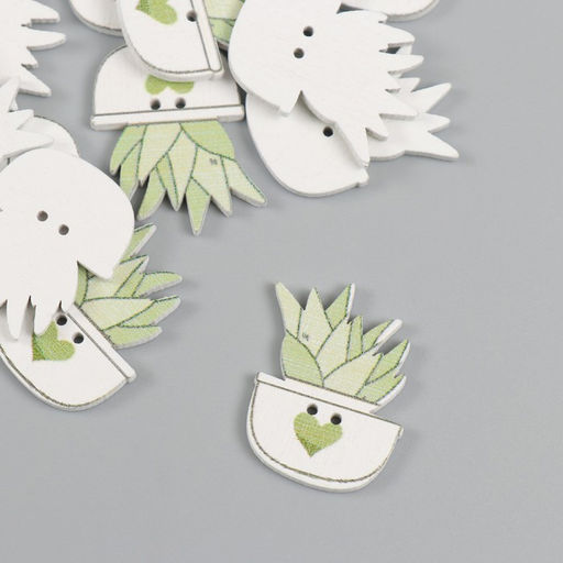 • Цена за 2 шт. Пуговицы дерево для творчества 2 прокола «Суккулент в горшочке», набор 20 шт., 1.8×2.5 см