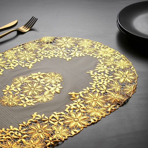 Набор салфеток ажурных Доляна «Листья», 46×30 см, 4 шт, ПВХ, цвет золотой