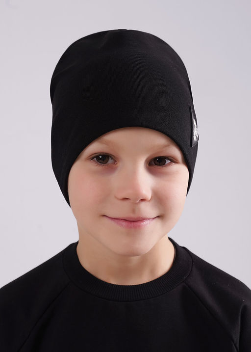 Шапка детская двойная без отворота, декорирована стильной нашивкой. Мягкая и удобная, хорошо защищает от ветра. Превосходно подойдёт для весны. Размер 52-54 95%Хлопок5%ПУ(эластан)