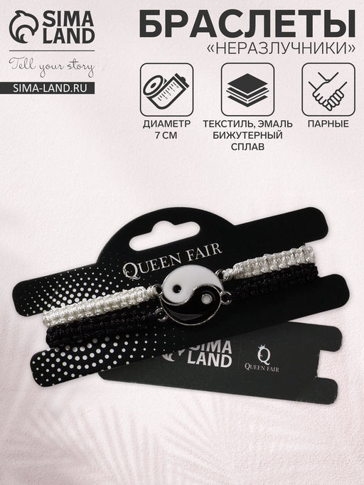 • Цена за 2 шт. Браслеты парные «Неразлучники» инь-ян, толстая нить, чёрно-белые, d=7 см