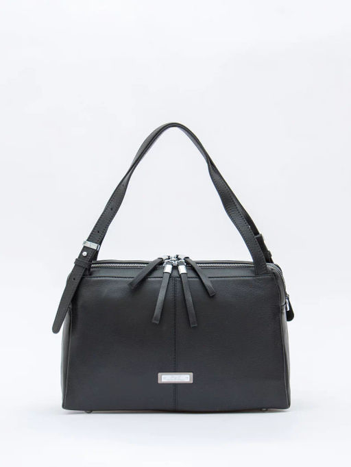Базовая сумка, выполнена из натуральной кожи. Дополнена серебристой фурнитурой.  Данная модель закрывается на молнии. Носится в руке за встроенные ручки с регулировкой длины и на плече, съемный ремень регулируется по длине. Каркас мягкий. На дне предусмотрены ножки.