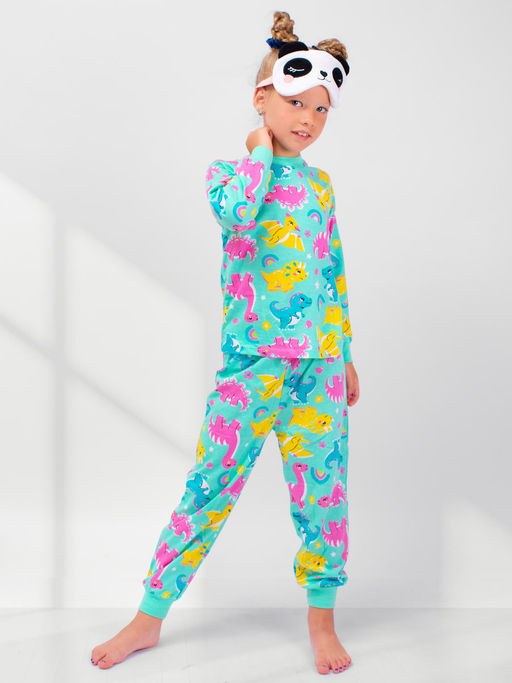 Пижама для девочки из двух предметов. Кофточка свободного кроя не стесняет движений. Брюки с эластичным поясом и манжетами по низу. Ткань - кулирка мягкая позволяет коже дышать и сохраняет тепло.