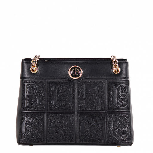 Женственная сумка-тоут выполнена из  экокожи, декорирована на передней части вышивкой. Дополнена золотистой фурнитурой. Данная модель закрывается на молнию, носится на сгибе руки или на плече. Каркас жесткий. На дне предусмотрены ножки.
