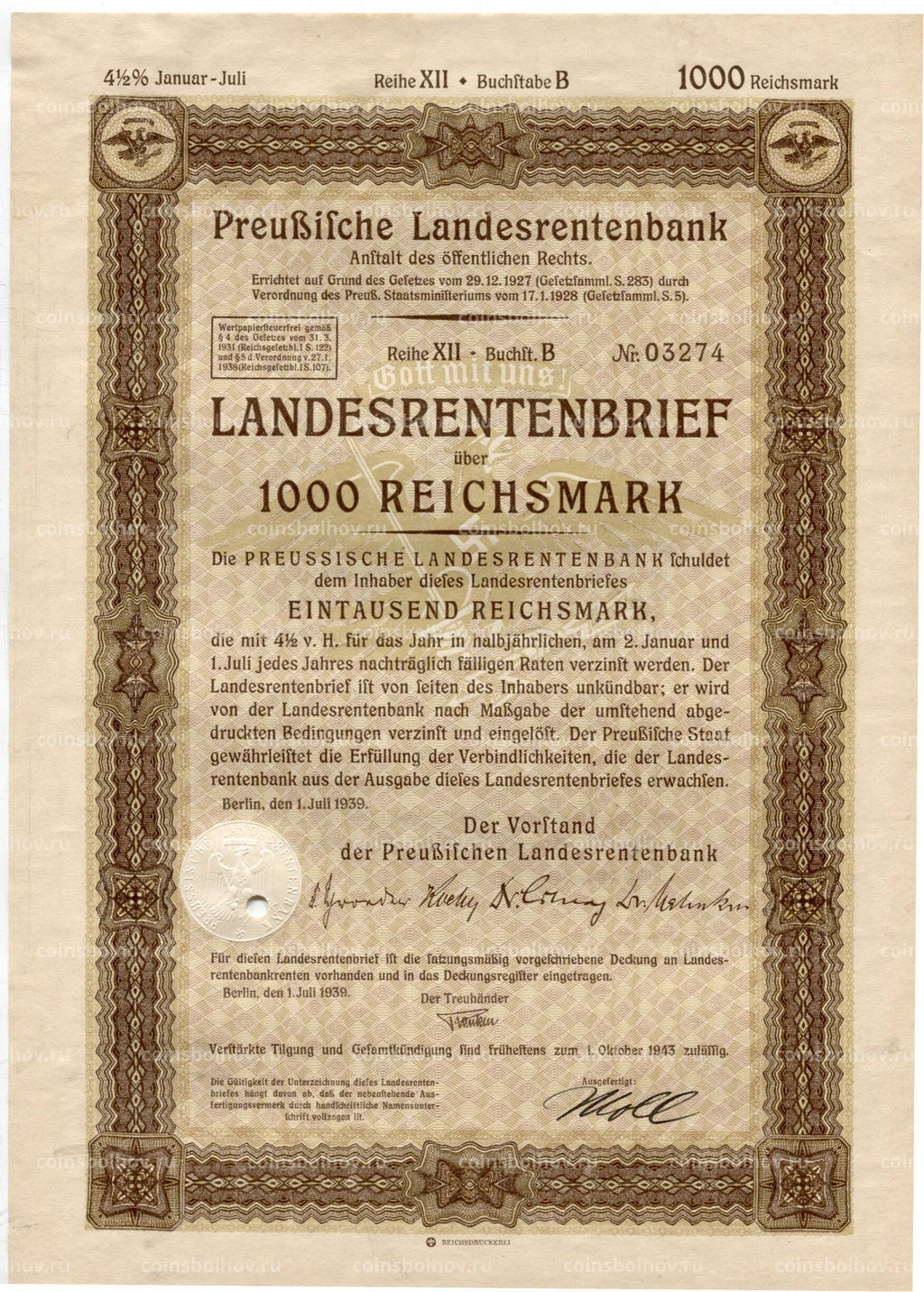Облигация 4,5% 1000 рейхсмарок 1939 года Германия
