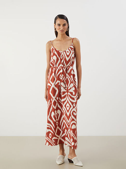 V Yaka Desenli Ask?l? Elbise