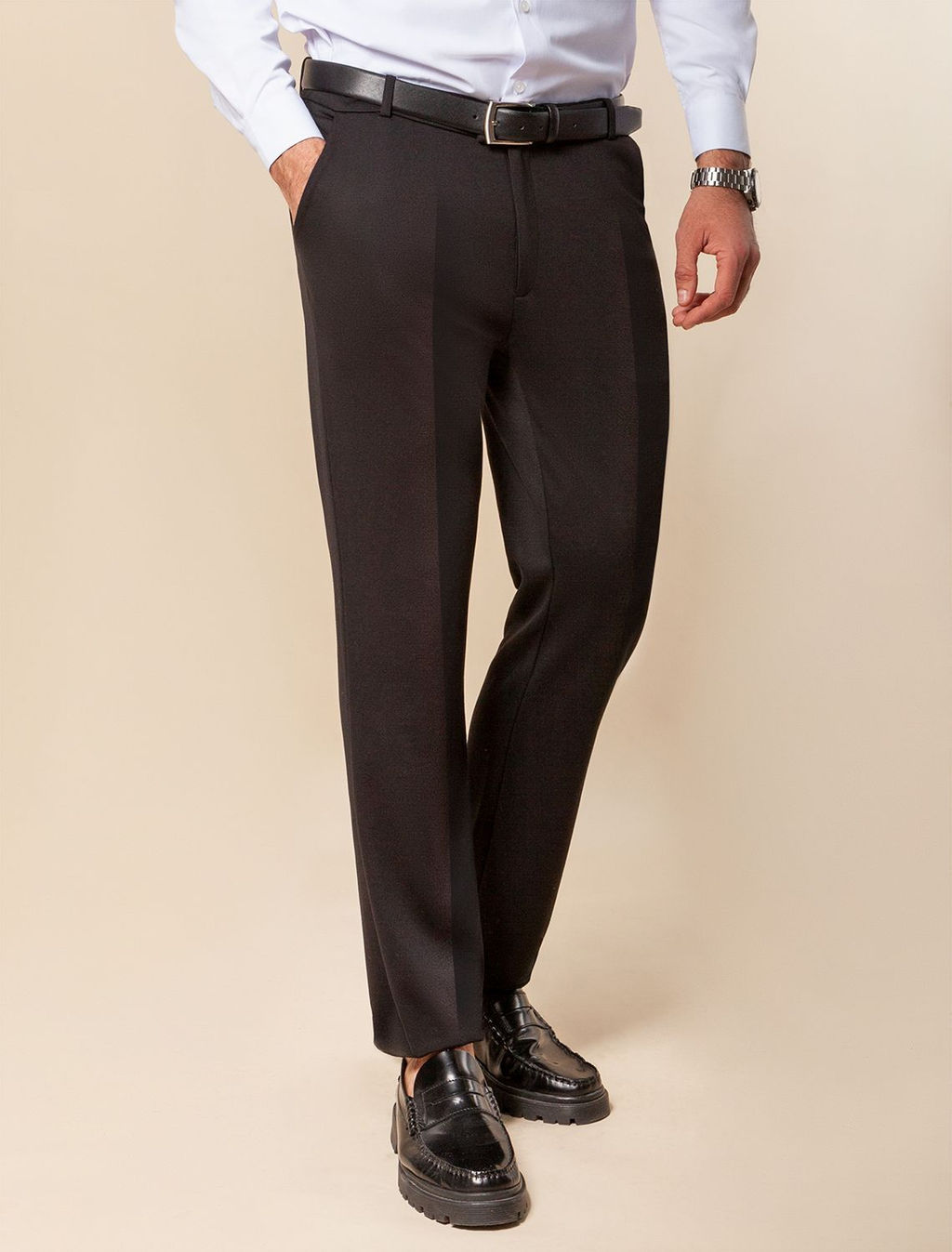 • Брюки со стрелками из плотного джерси на резинке сзади