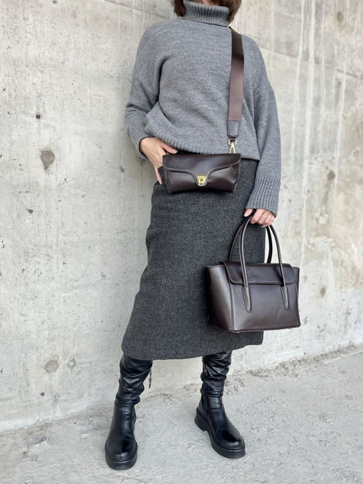 Женская сумка из натуральной мягкой кожи цвета кофе, 2 в 1, с клатчем в комплекте.