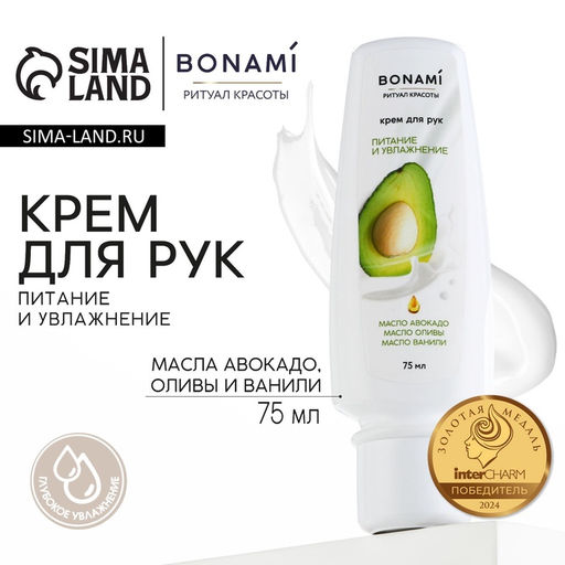 Крем для рук с маслом авокадо, оливы и ванили, питание и увлажнение, 75 мл, BONAMI