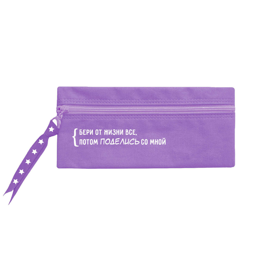 Пенал школьный Феникс+, арт.68958/ 24 ЦИТАТА ДНЯ. ФИОЛЕТОВЫЙ 19.5х9 см, полиэстер, молния, шелкография, ПЭТ-пакет).
