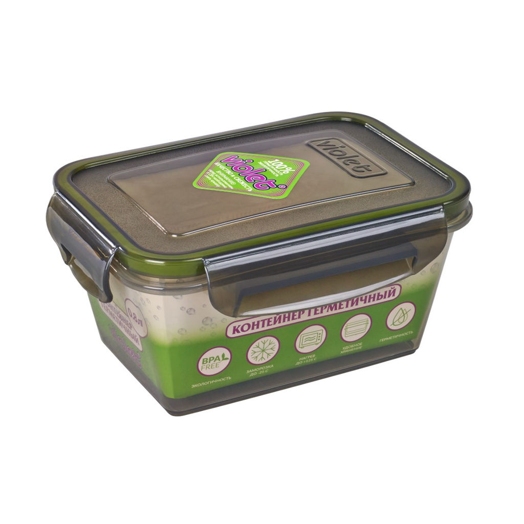 Емкость из пищевого пластика объемом 0,8 л для хранения продуктов питания и готовых блюд. Крышка оснащена 4мя защелкивающимися замками для фиксации за корпус и силиконовым уплотнителем по внутреннему периметру. Это обеспечивает герметичное закрытие для защиты от протекания и распространения возможных запахов пищи. Емкости контейнеров встают друг в друга, что позволяет компактно хранить их, экономя пространство. Допустимо использование в СВЧ (только с открытой крышкой), в морозильной камере (до -25 С) и в посудомоечной машине.