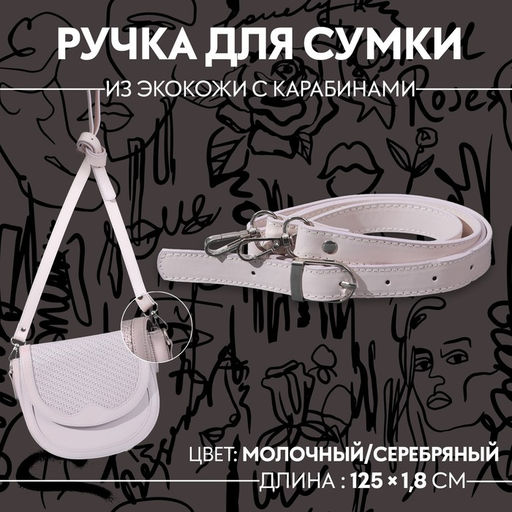 • Цена за 6 шт. Ручка для сумки из экокожи, с карабинами, 125×1.8 см, цвет молочный