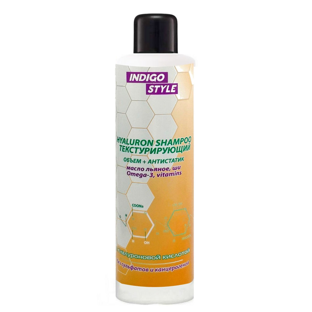 Описание товара Indigo Style Hyaluron Shampoo Шампунь текстурирующий объём+антистатик (масло льяное, ши, Omega-3, vitamins) с гиалуроновой кислотой, 200 мл