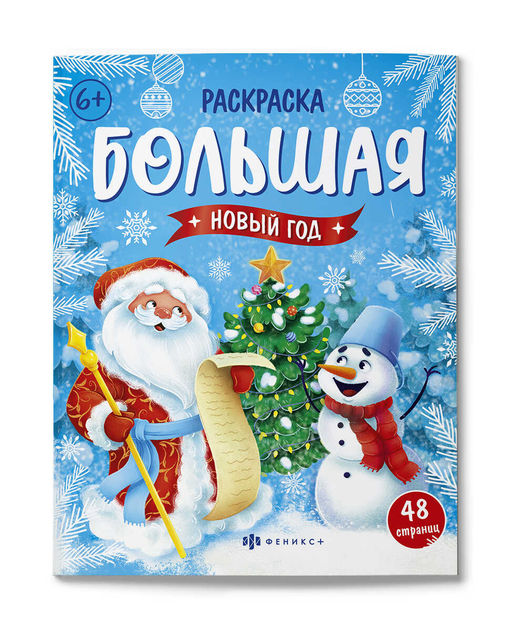 Раскраска для детей. Серия "Большая раскраска" арт. 67906 НОВЫЙ ГОД /200х260 мм, 24 л., блок - офсет 100 г/м2, печать в две краски, обл - мелованный картон 215 г/м?, клеевое скрепление,