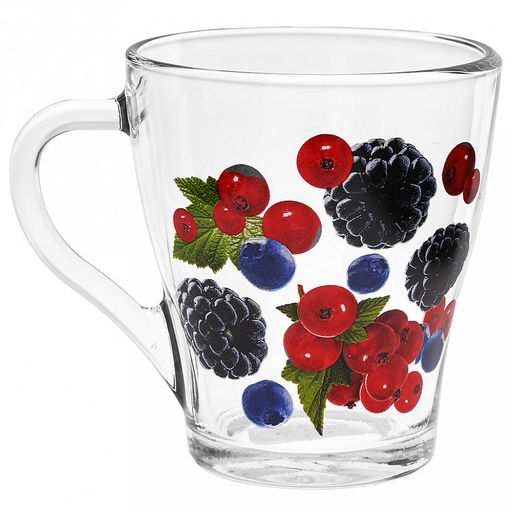 Кружка стеклянная "Ягоды микс" 250мл, д8см, h9,3см, форма "Грация" (Россия)