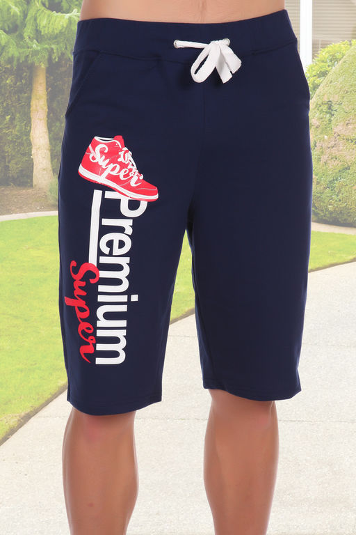 Мужские шорты из футера с лайкрой. Принт в виде кроссовка и надписи, пояс на резинке со шнурком, по бокам карманы, длина приблизительно до коленей. Могут быть парой детским шортам Кевин (продается отдельно). Две расцветки — серая и синяя. Размеры от 44 до 62. Возможна розница.