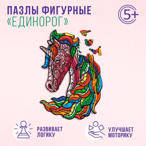 • Пазлы фигурные «Единорог», 97 деталей, дерево