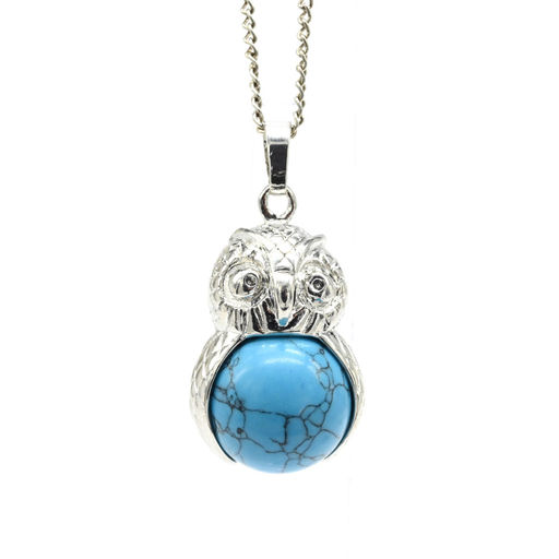 Кулон женский Сова с бирюзой искусственной в металле 18*26мм