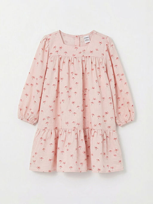 Kare Yaka ?i?ekli K?z ?ocuk Elbise