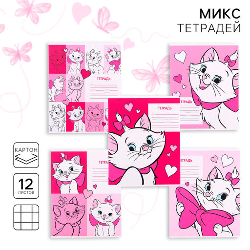 • Цена за 20 шт. Тетрадь в крупную клетку 12 листов, 1 сентября, 5 видов МИКС, обложка мелованный картон, Коты Аристократы