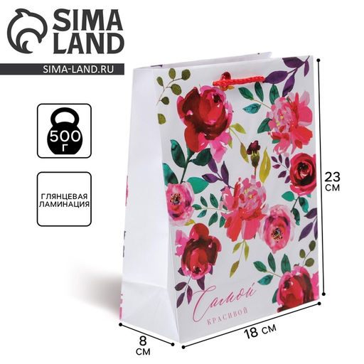 Плотность, г/м²: 128. Допустимый вес вложения, г: 500. Тематика: Цветочно-растительная. Тематика праздника: 8 Марта. Тематика праздника: Универсальная тематика. Отделка пакета: Ламинация. Вид ручки: Ручка-шнур. Особенности: Без особенностей. Бесплатная доставка: Да. Наша разработка: Да. Размеры товара: 8/23/18. Примечание: Пакеты изготовлены из тонкой бумаги, поэтому на них могут появиться вмятины. Такая особенность не является браком..