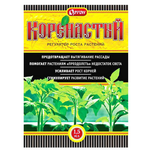 Высокоэффективный регулятор роста растений для предупреждения перерастания рассады томатов, перца сладкого, баклажанов, капусты белокочанной, а также для декоративных кустарников и цветочных культур (горшечные растения). Характеристики: * назначение: для рассады овощей, цветочных и декоративных культур; * объем: 1,5 мл; * препаративная форма: жидкость-концентрат; * упаковка: ампула в цветном пакете; * действующее вещество: хлормекватхлорид 600г/л; * срок годности: 2 года. Действие: * предотвращает вытягивание рассады, * способствует формированию компактных растений с укороченным, утолщенным стеблем, сильной корневой системой и листьями насыщенного тёмно-зелёного цвета; * улучшает качество рассады овощных и цветочных культур; * формирует более продуктивные и устойчивые к стрессам растения; * уменьшает прирост побегов декоративных кустарников, стимулируя их развитие; * повышает декоративные качества цветочных культур и ускоряет цветение. Применение: * содержимое ампулы препарата (1,5 мл) растворяют в воде по инструкции (в зависимости от культуры), тщательно перемешивают и обрабатывают растения с помощью опрыскивателя в 2-3 подхода с интервалом в несколько дней; * для цветов: однократный полив в фазу сформированных, но еще не окрашенных бутонов; * необходимо строго соблюдать количество рекомендуемых обработок; * рабочий раствор использовать в течение 2 часов.