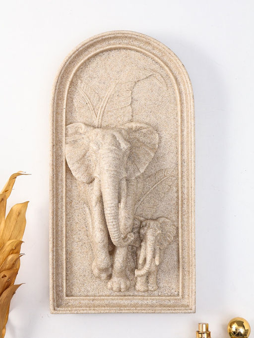 Панно интерьерное полистоун "Слон со слонёнком в джунглях" песочный 19,2х7,4х37,2 см
