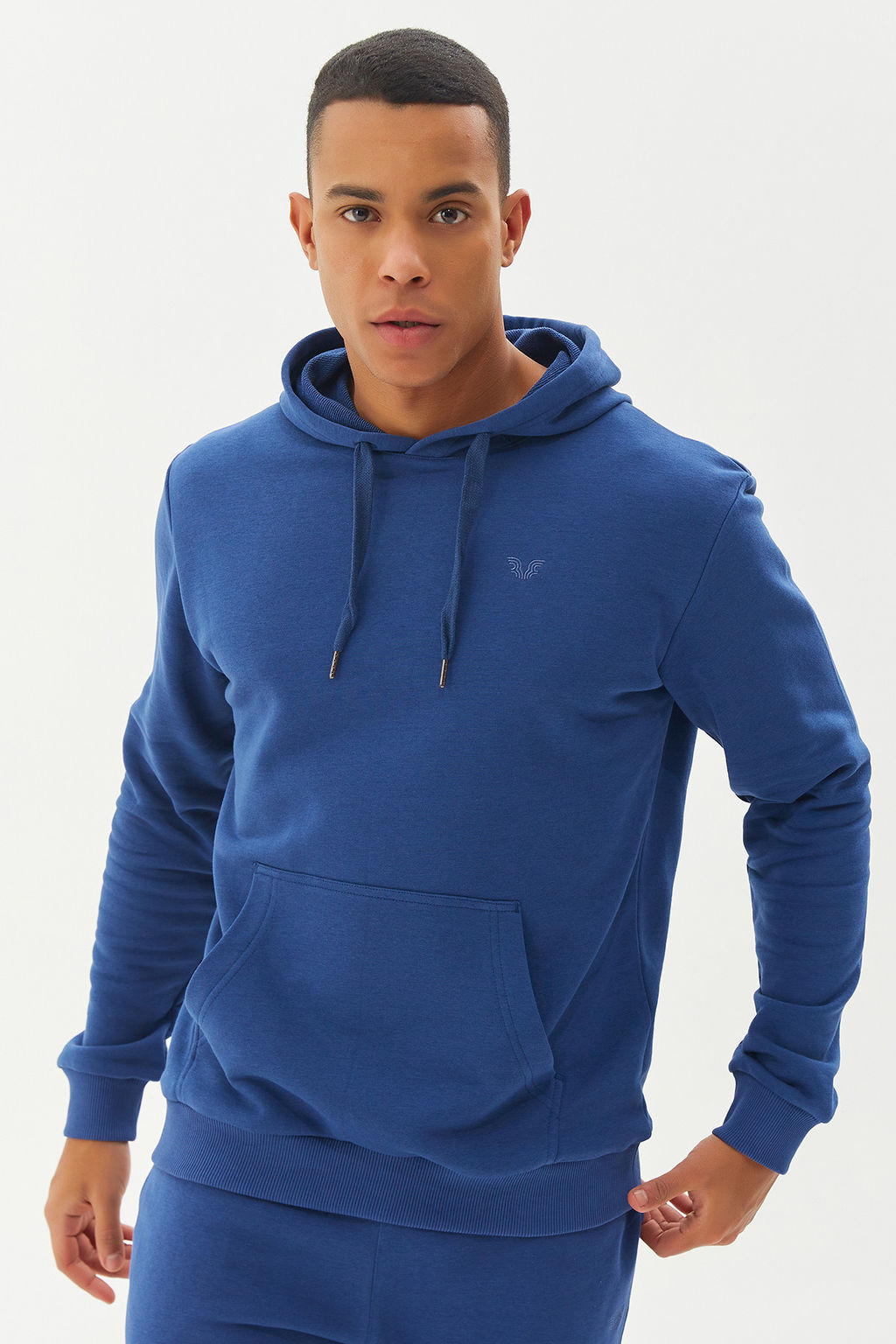 Мужская хлопковая толстовка с капюшоном и карманом кенгуру идеально подходит для повседневного и спортивного образа. Благодаря используемой хлопковой нити имеет гигиеничную, прочную и долговечную структуру. Полиэстер обеспечивает быстрое высыхание, так как при стирке впитывает очень мало воды. Обладает функцией сохранения тепла. Присутствует защита от скатывания.