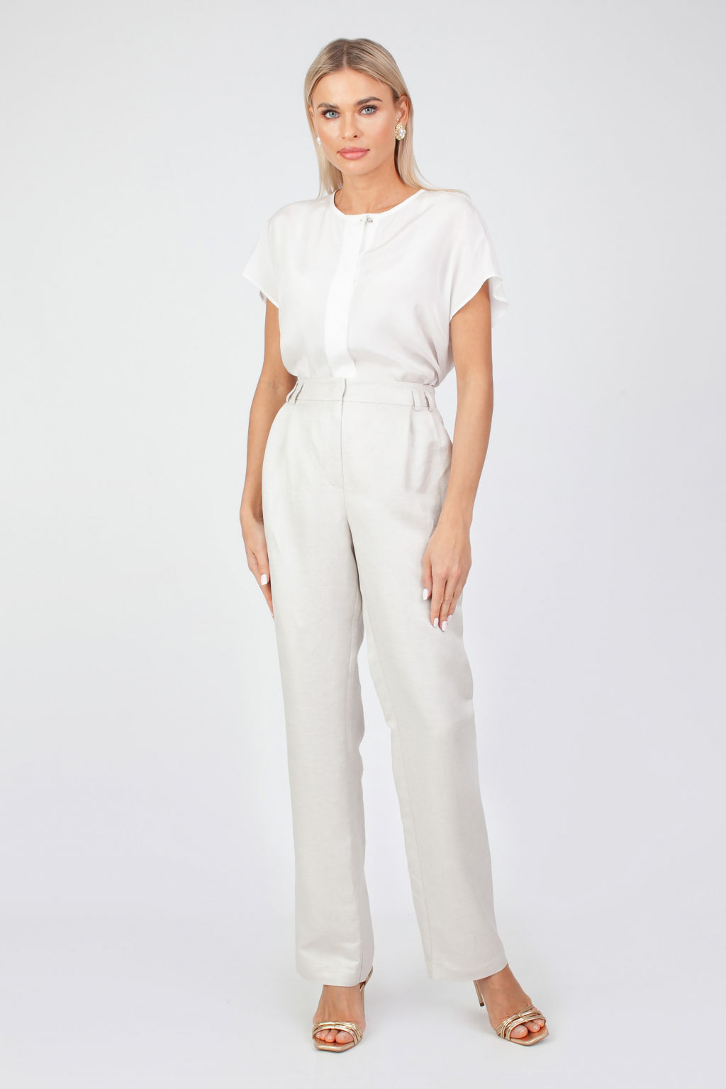 Брюки прямого силуэта. С посадкой на талии. Карманы в боковом шве.