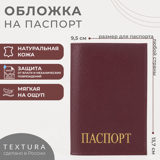 Назначение обложки: Для паспорта. Вид натуральной кожи: Флотер. Тематика: Однотонная. Наличие символики РФ: Нет. Особенности: С надписью. Бесплатная доставка: Да. Размеры товара: 0.3/13.7/9.5. Примечание: Оттенок данного товара может незначительно отличаться от фото/видеоизображения (в зависимости от настроек яркости вашего экрана)..