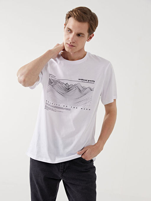 • Bisiklet Yaka K?sa Kollu Bask?l? Penye Erkek Ti??rt