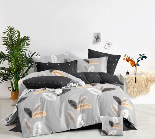 1.5 спальный: пододеяльник 150х220 см, простыня 90х200+20 см резинка по кругу // 150х220 см резинка по углам, наволочка 70х70 см - 2 шт.