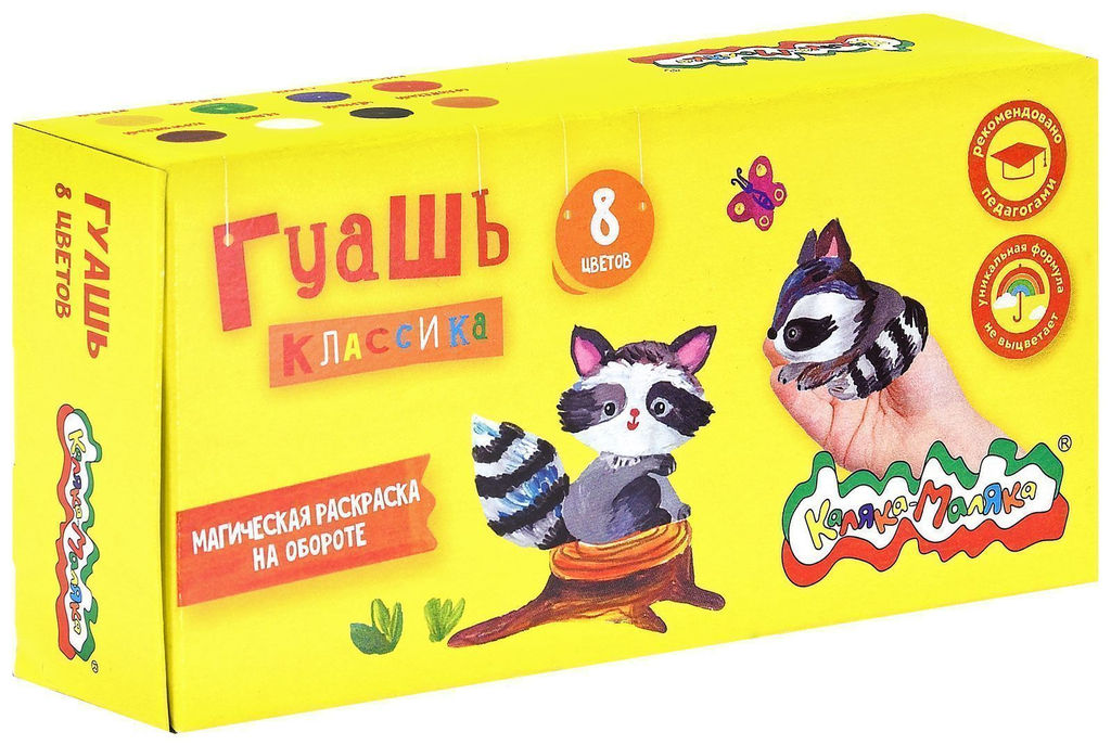 • Гуашь Каляка-Маляка КЛАССИКА 8 цветов по 20 мл ассорти, набор баночек